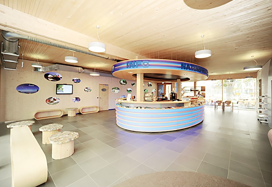 Das Alpseehaus in Immenstadt (Bühl) ist ein Naturerlebnishaus. Das Ziel der Planung war, das Gebäude so naturnah wie möglich zu gestalten, um einen verantwortungsvollen und nachhaltigen Umgang mit den natürlichen Ressourcen zu demonstrieren. Die Gebäudehülle wurde im Passivhausstandard realisiert, komplett aus Allgäuer Holz, gedämmt mit Holzfaser und Zellulose, sämtliche Baustoffe gewonnen aus nachwachsenden Rohstoffen, giftfrei, recyclingfähig, umweltschonend und wohngesund. Das ambitionierte Gebäude vereint sehr unterschiedliche Nutzungen unter einem Dach: einen großen Foyerbereich mit Gästeinformation, mehrere Büroräume, Ausstellungsräume und einen Filmvorführraum. All diesen unterschiedlichen Anforderungen muss die Beleuchtung gerecht werden.